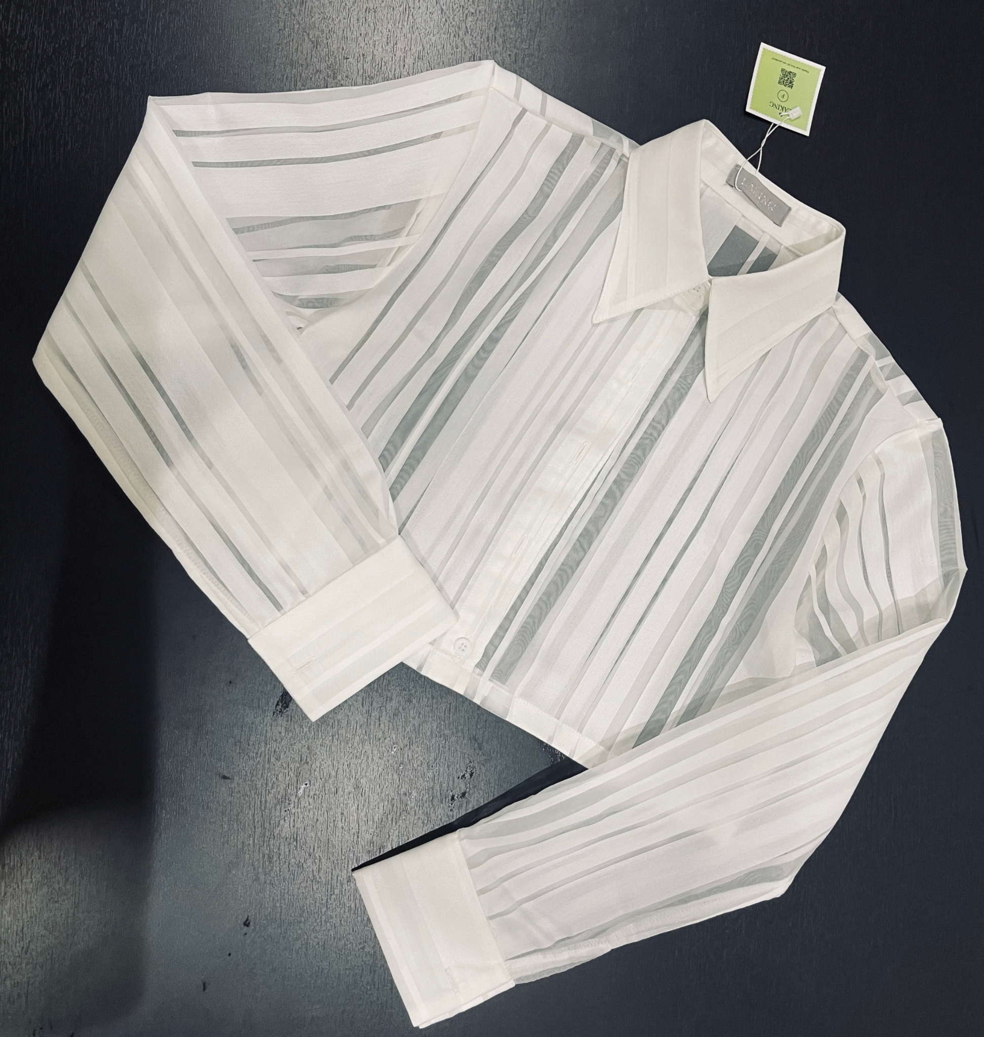 A11342 ÁO TRẮNG SƠMI TAY DÀI SỌC VOAN FREESIZE |