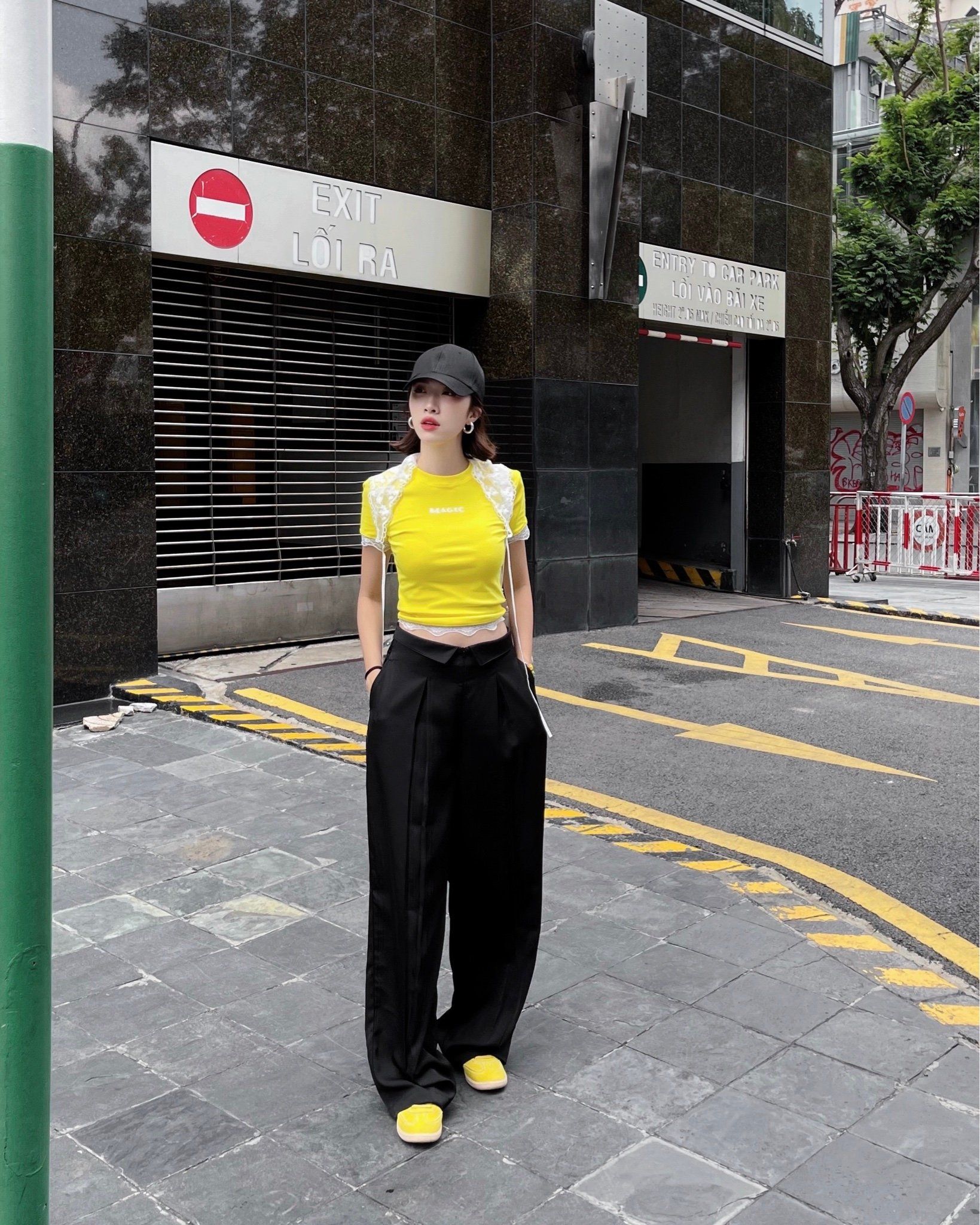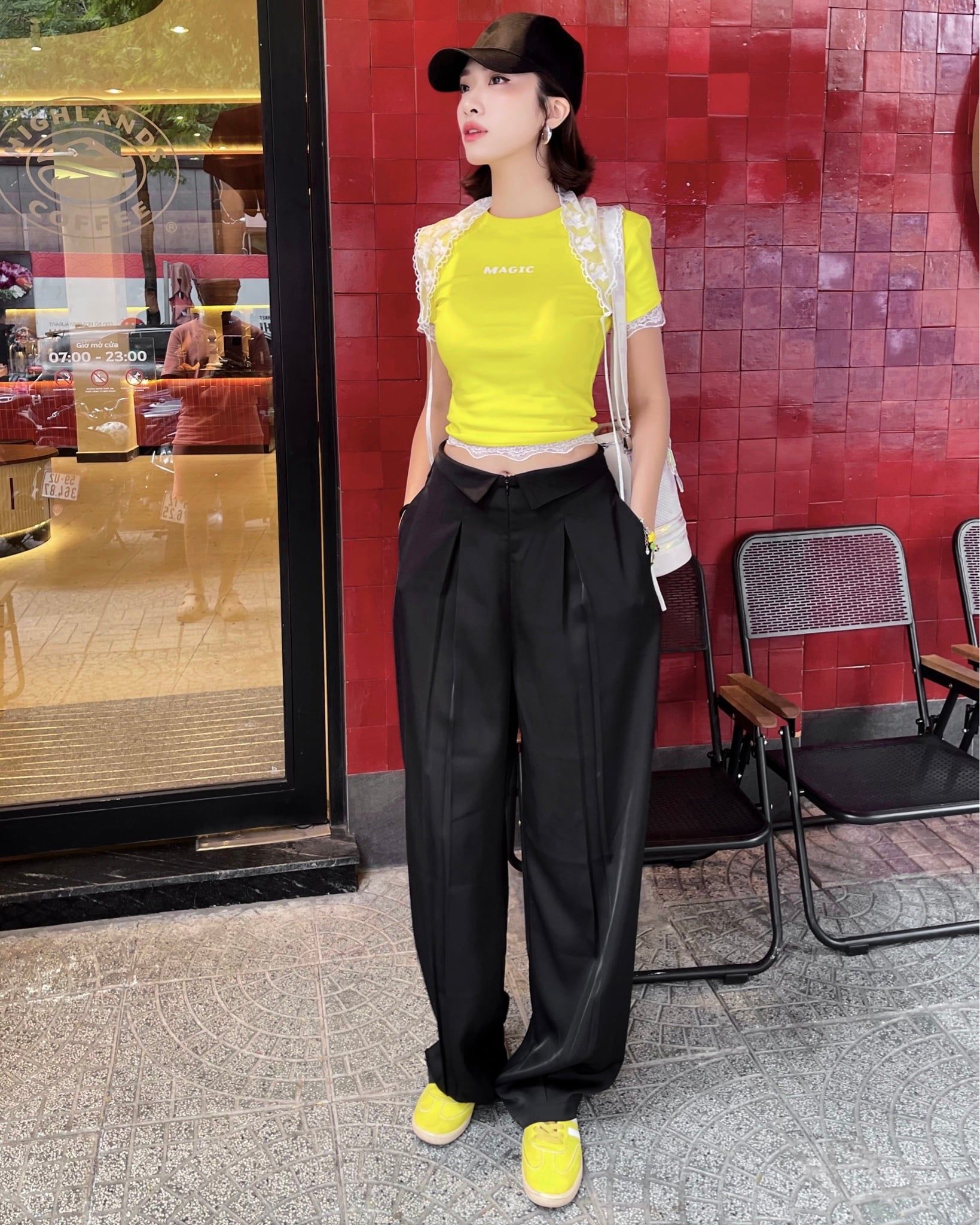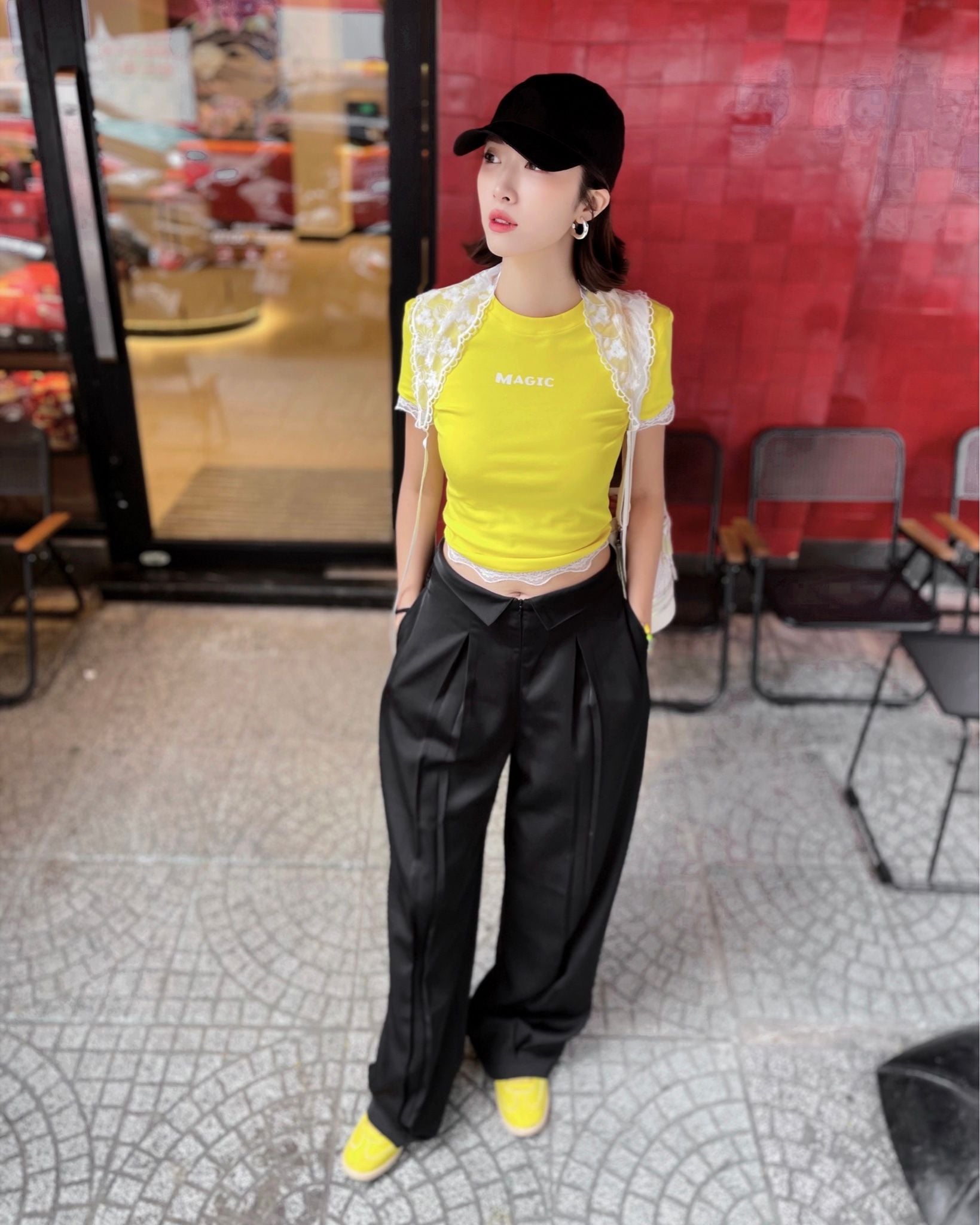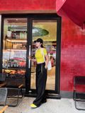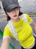 A93825 ÁO THUN VÀNG TAY NGẮN MAGIC + KHĂN REN HOA