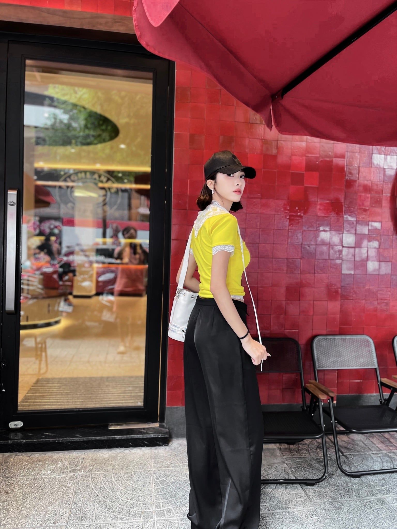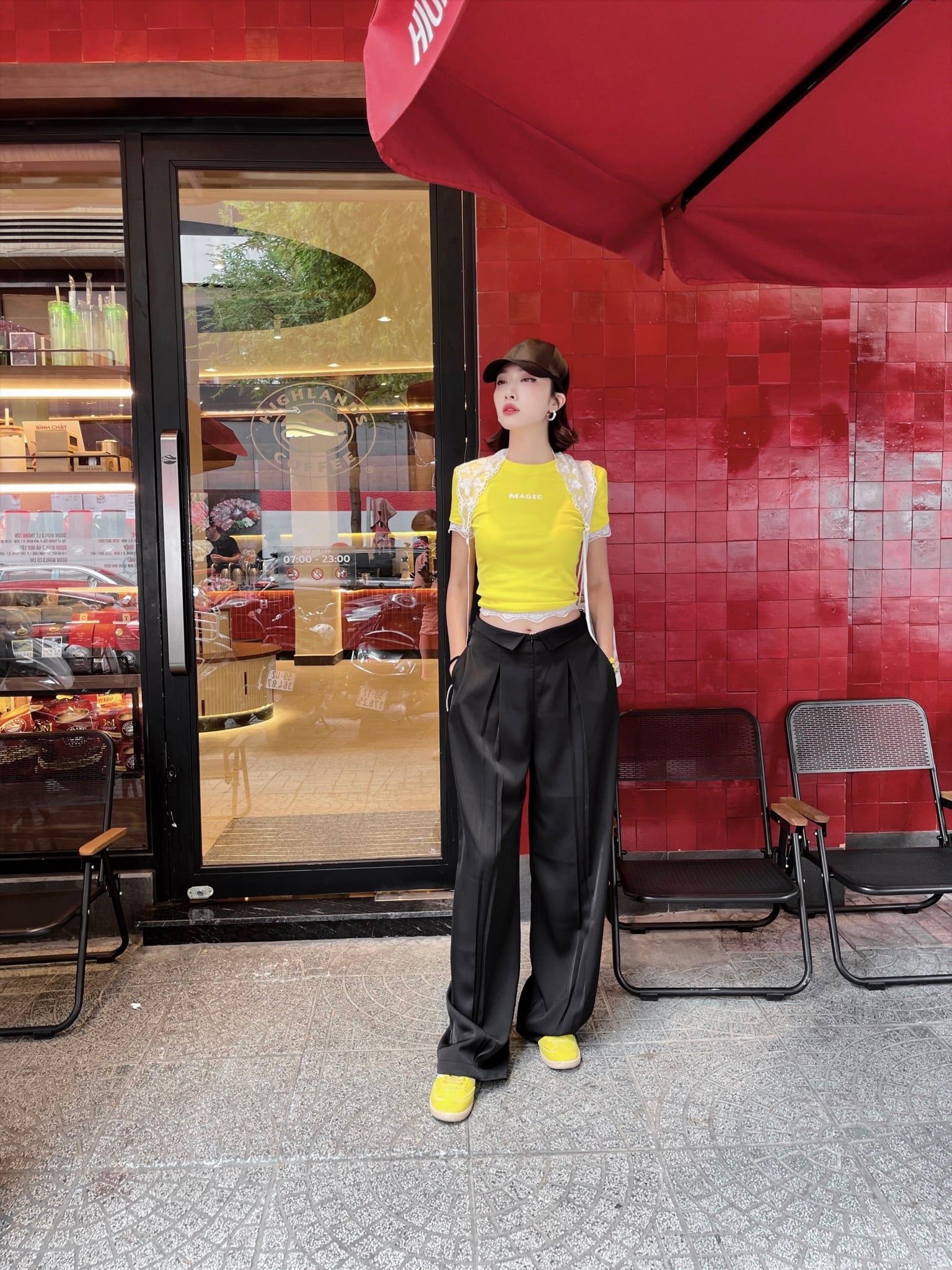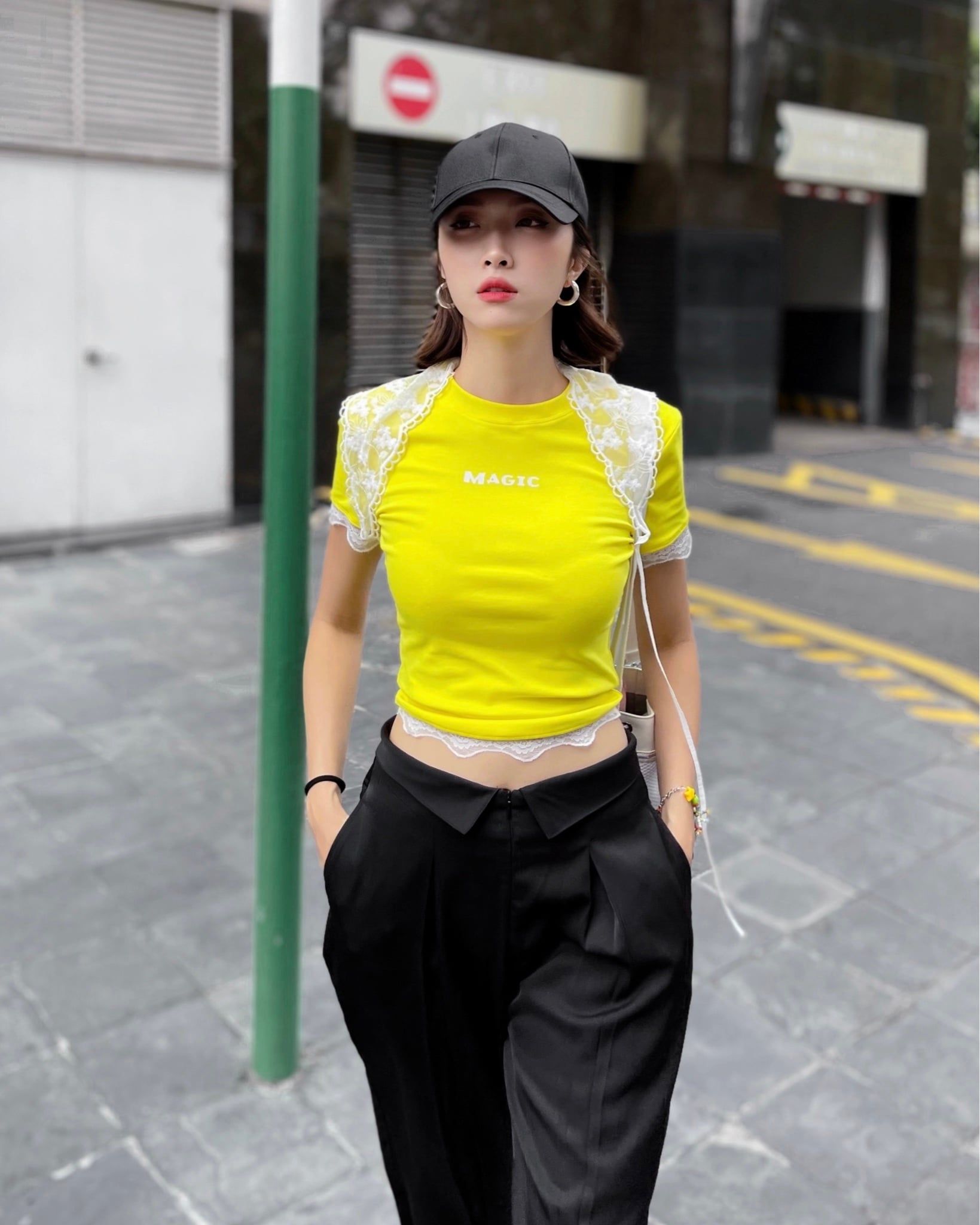 A93825 ÁO THUN VÀNG TAY NGẮN MAGIC + KHĂN REN HOA