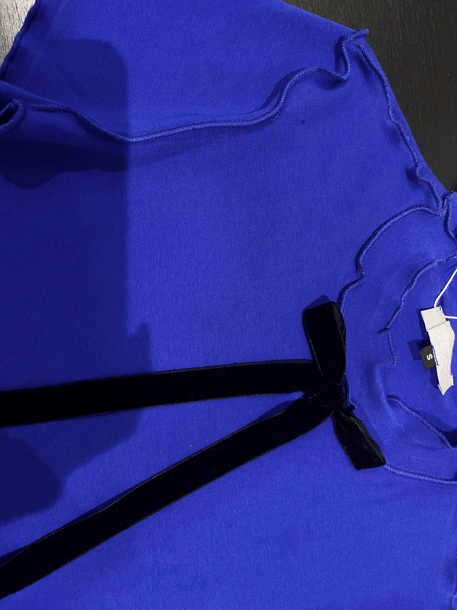 A93826 ÁO THUN XANH COBAN TAY NGẮN + nơ đen