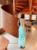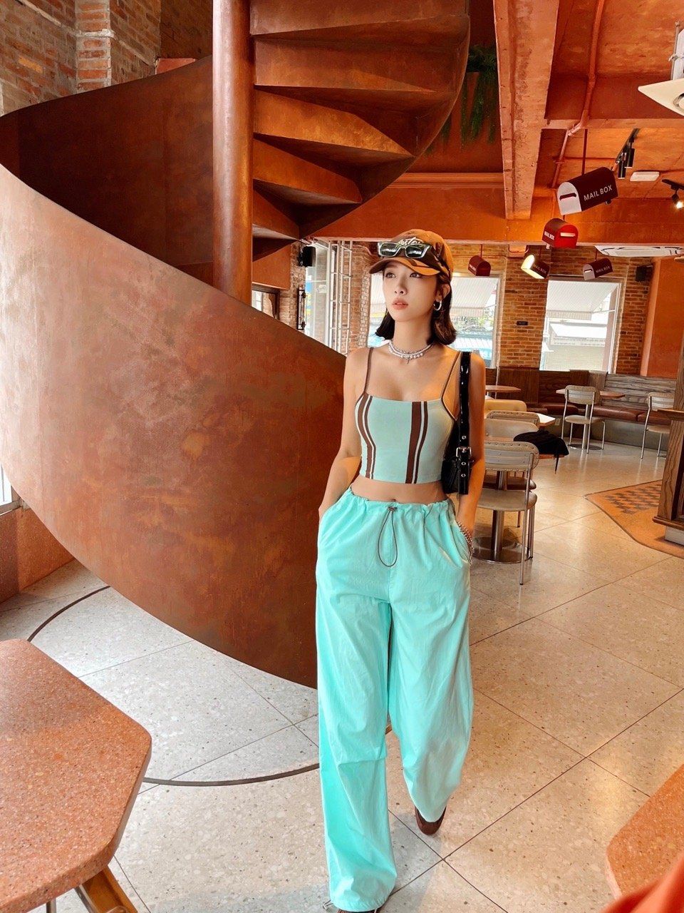 A9616 ÁO XANH SỌC NÂU HAI DÂY