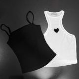 A96112 SET ÁO ĐEN HAI DÂY + ÁO TRẮNG TRÁI TIM TANKTOP THUN NHŨ FREESIZE |