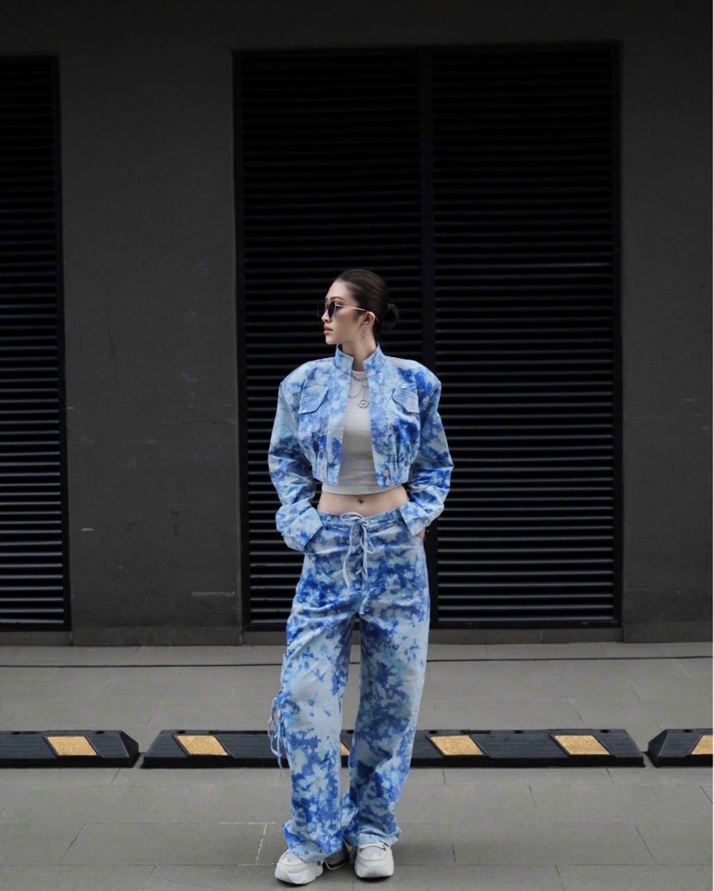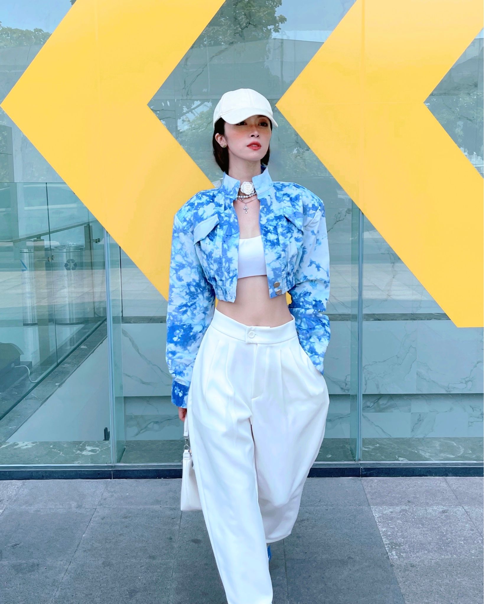 Đã đến lúc “lấp đầy” tủ đồ với những chiếc jacket cropped – biểu tượng mới của sự trẻ trung và tự do hình thể. Với đường cắt boxy, vai rộng cùng lớp đệm vai tinh tế, chiếc áo khéo léo tôn đường cong eo thon, mở ra tỷ lệ mới mẻ đầy sức hút.Khi phối cùng crop top và quần cạp cao, công thức kinh điển này một lần nữa chứng minh sức mạnh vượt thời gian. Sắc denim loang xanh trải dài qua toàn bộ bố cục, gợi cảm giác của bầu trời sau cơn mưa,tông xanh loang nhẹ tạo độ sống động, khiến look trở nên nhiều tầng màu sắc vừa khác biệt vừa phóng khoáng.