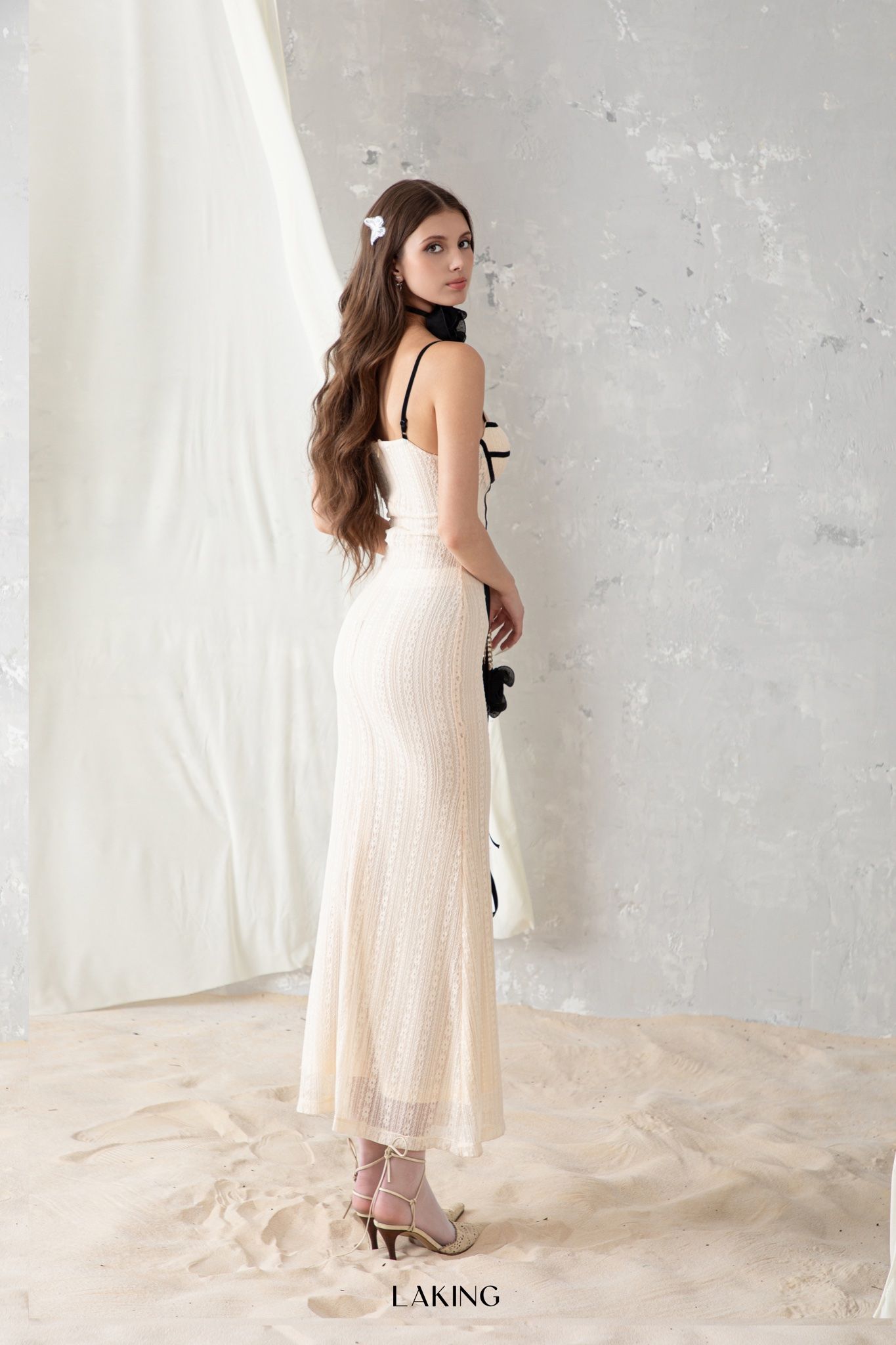 | CREAMY LACE DRESS w BLACK LINES |