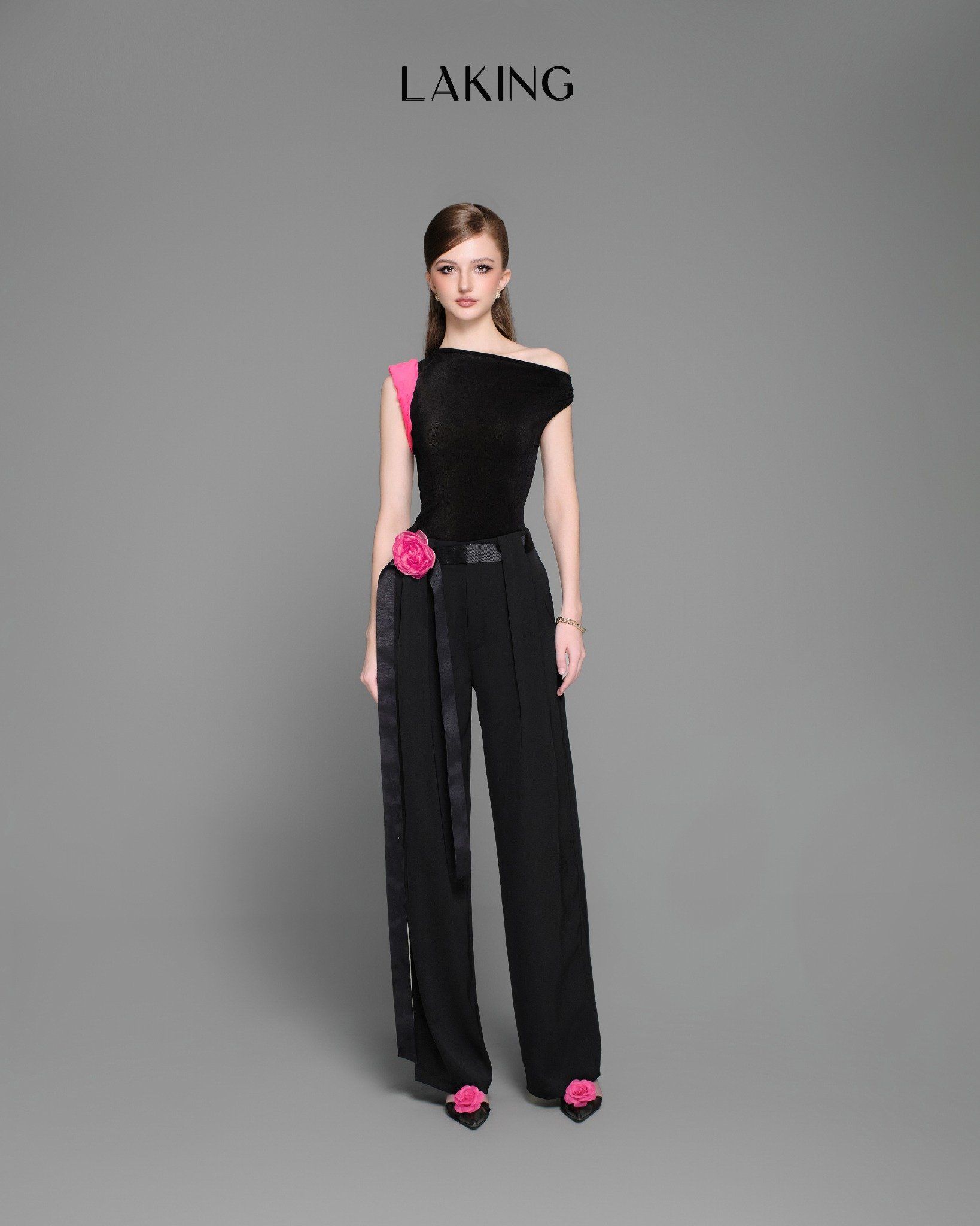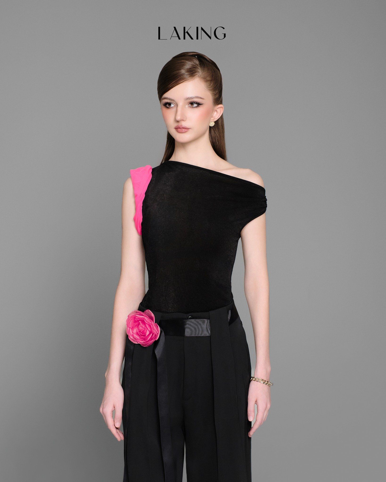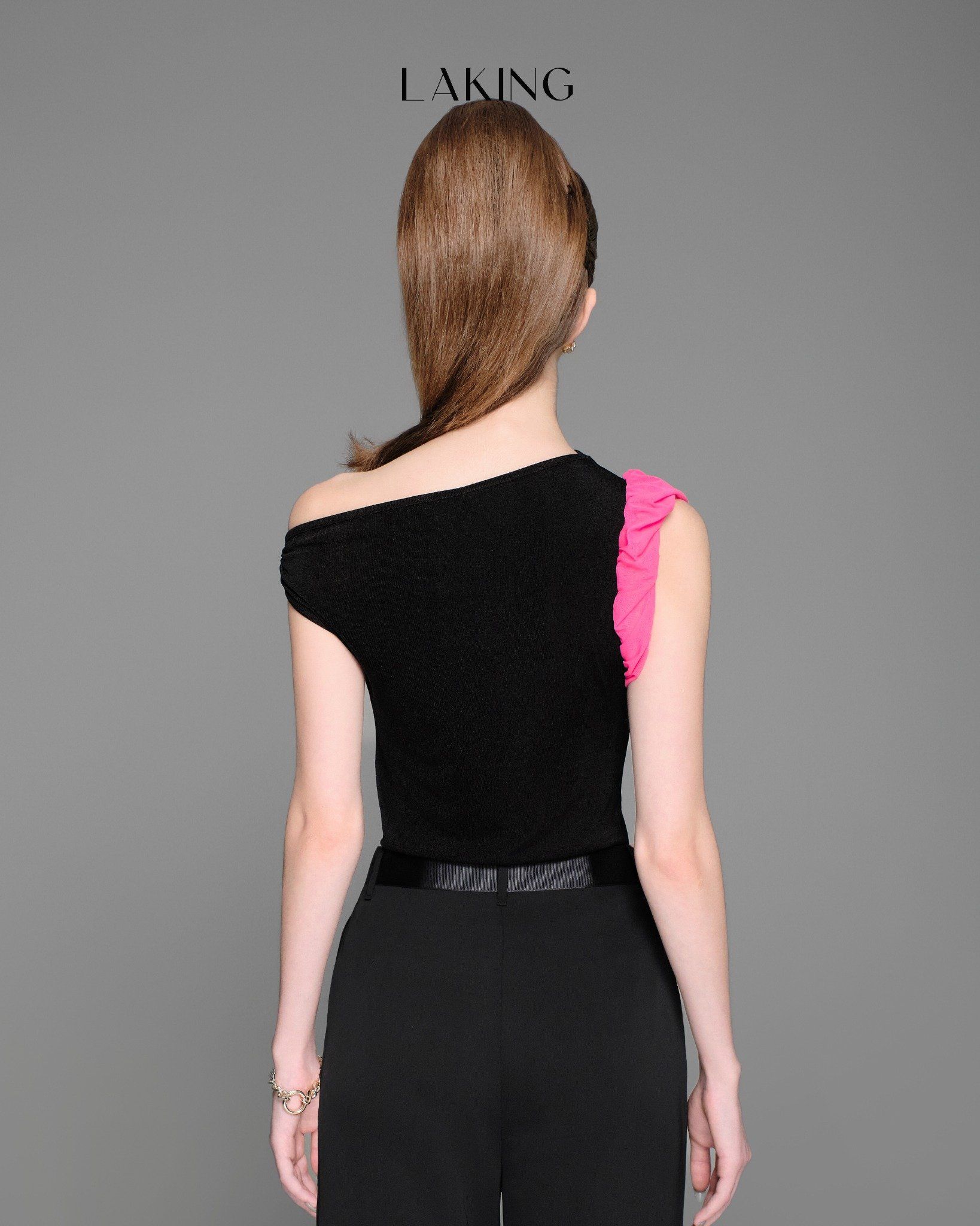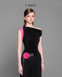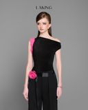 A11211 Áo Đen Sn Lệch Vai Hồng