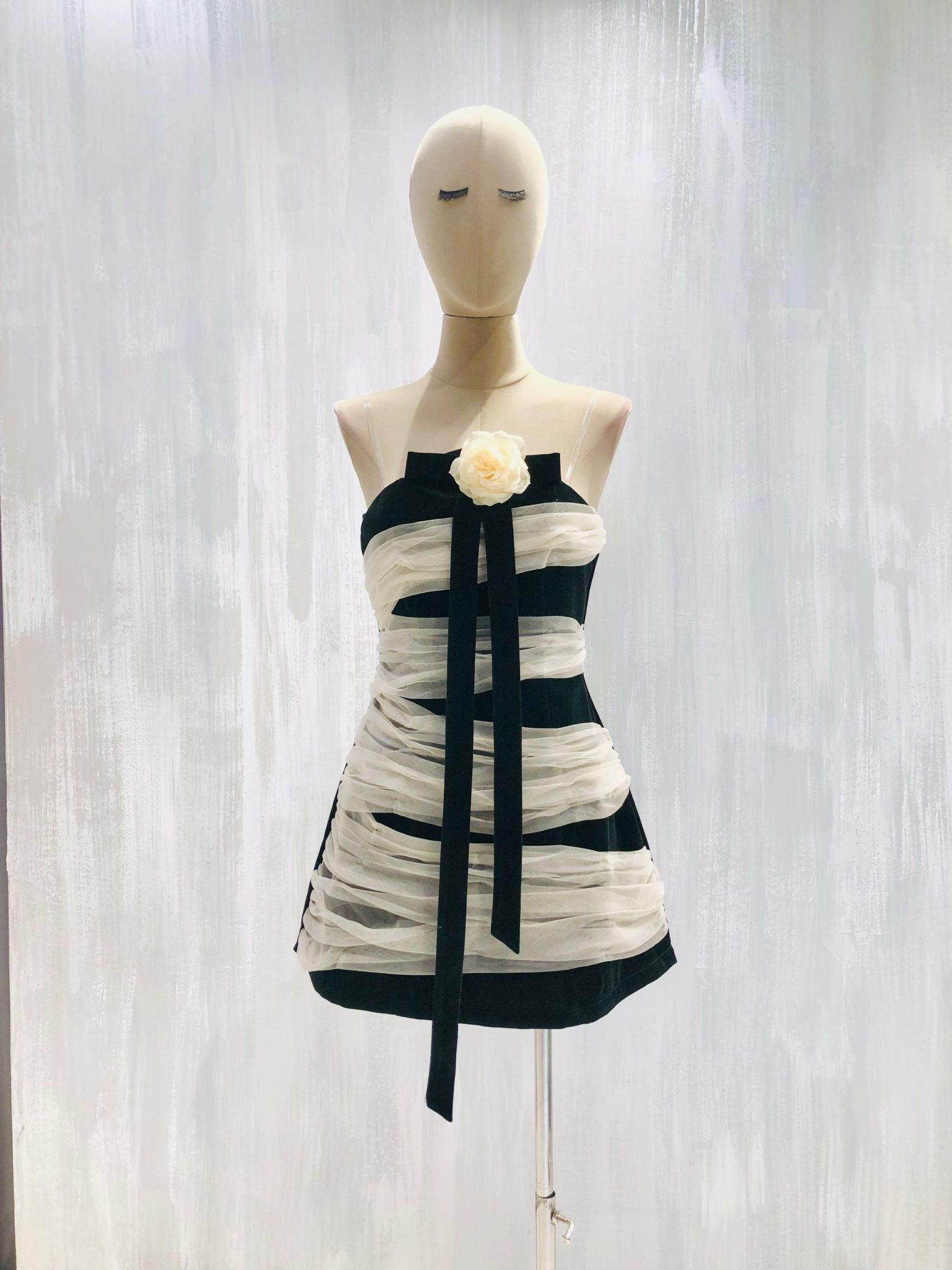 ĐẦM ĐEN HAI DÂY NGẮN PHỐI LƯỚI ĐÍNH HOA