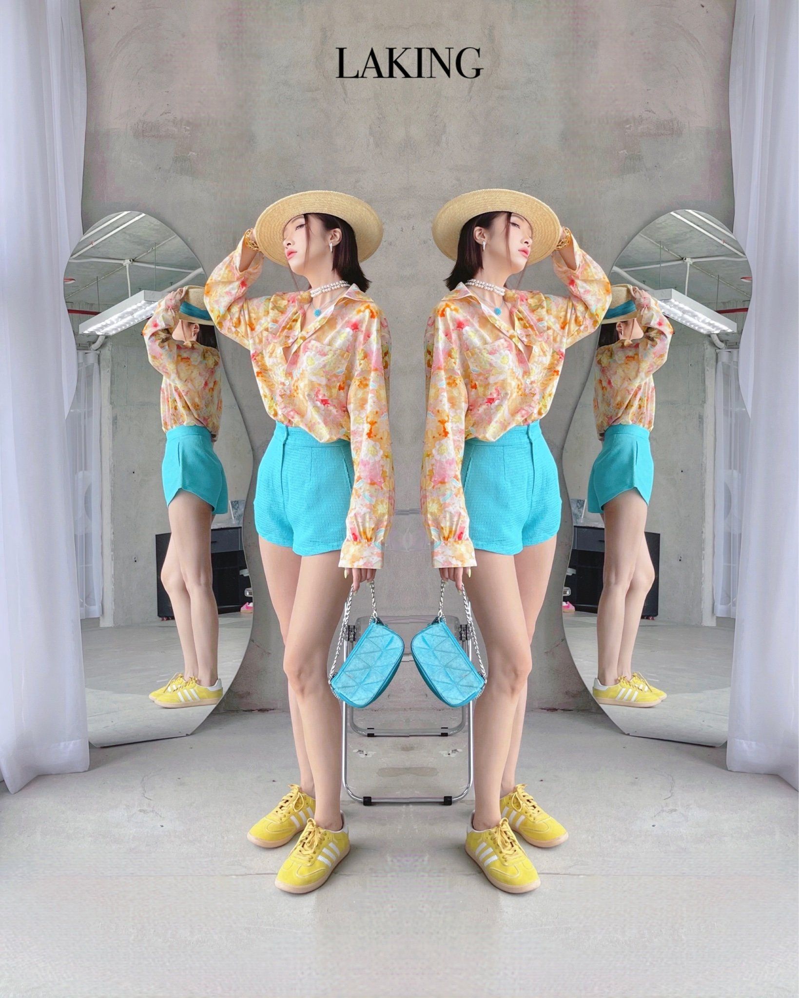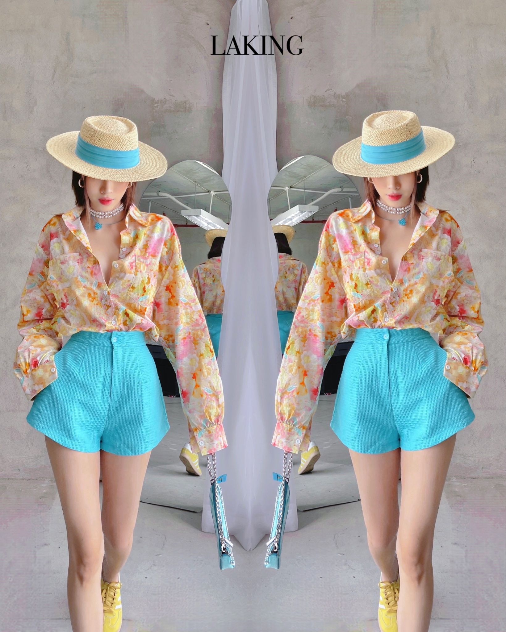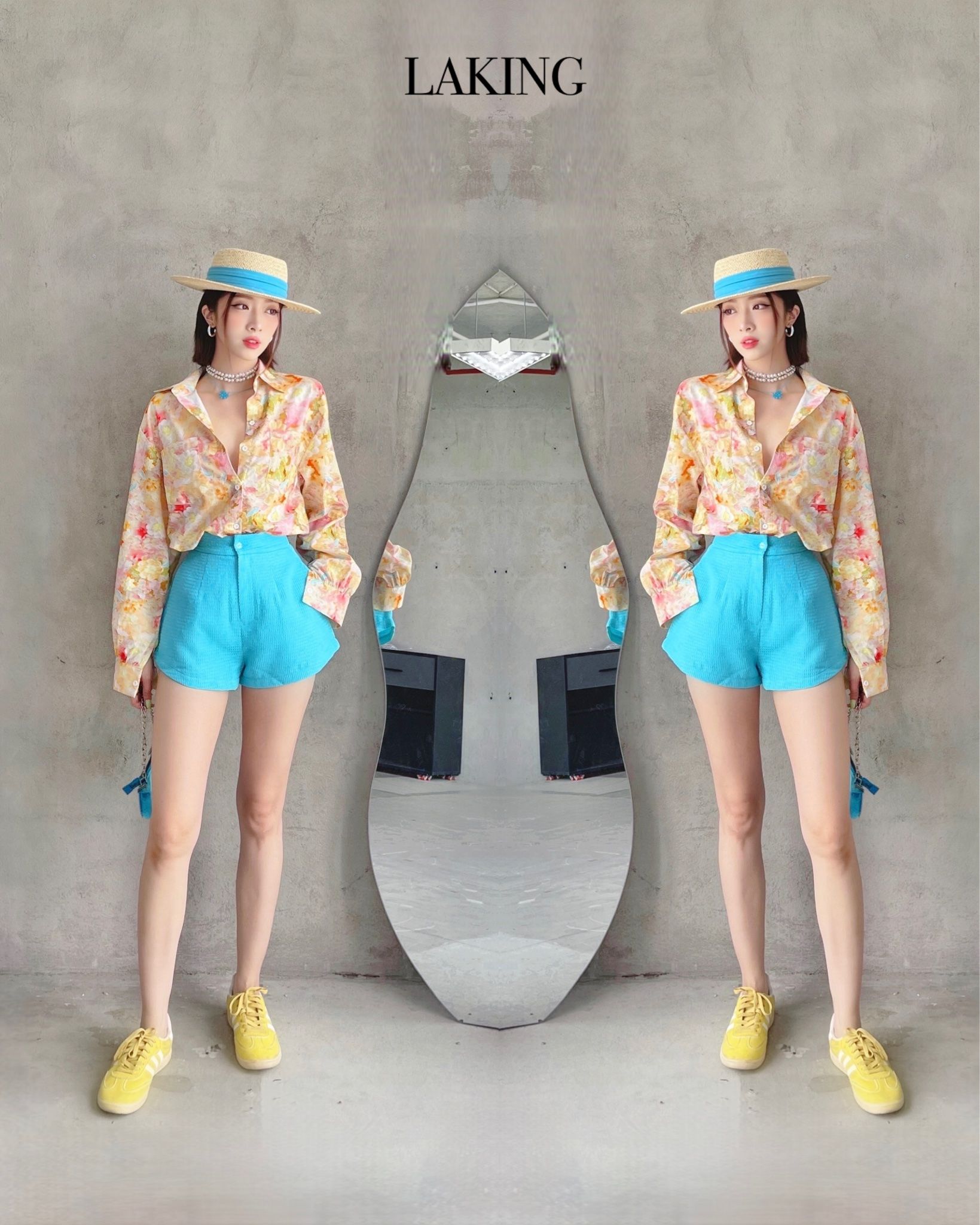 K5A1 ÁO HOA KEM VÀNG FREESIZE |