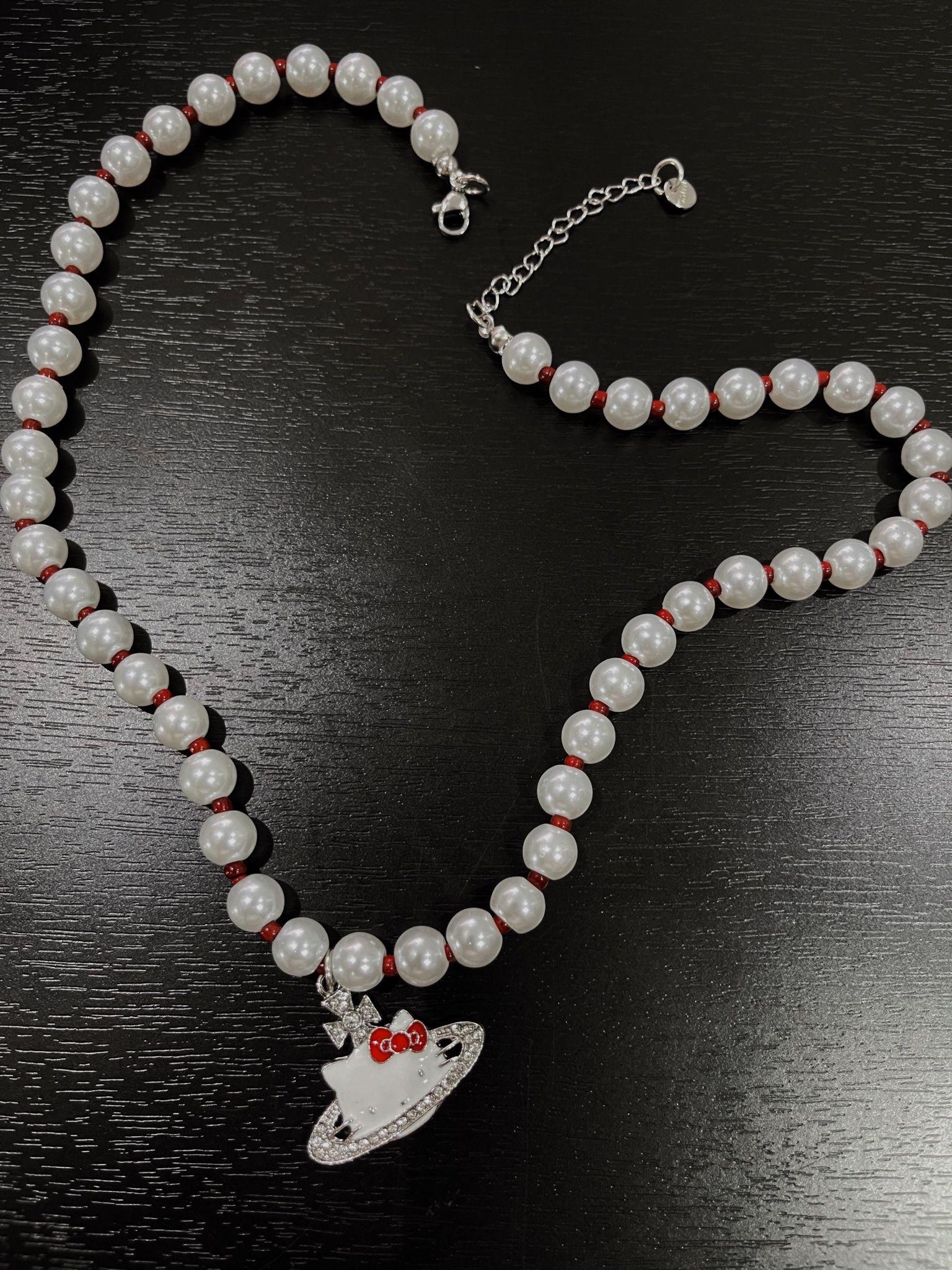 P226 DÂY CHUYỀN NGỌC TRAI KITTY ĐỎ