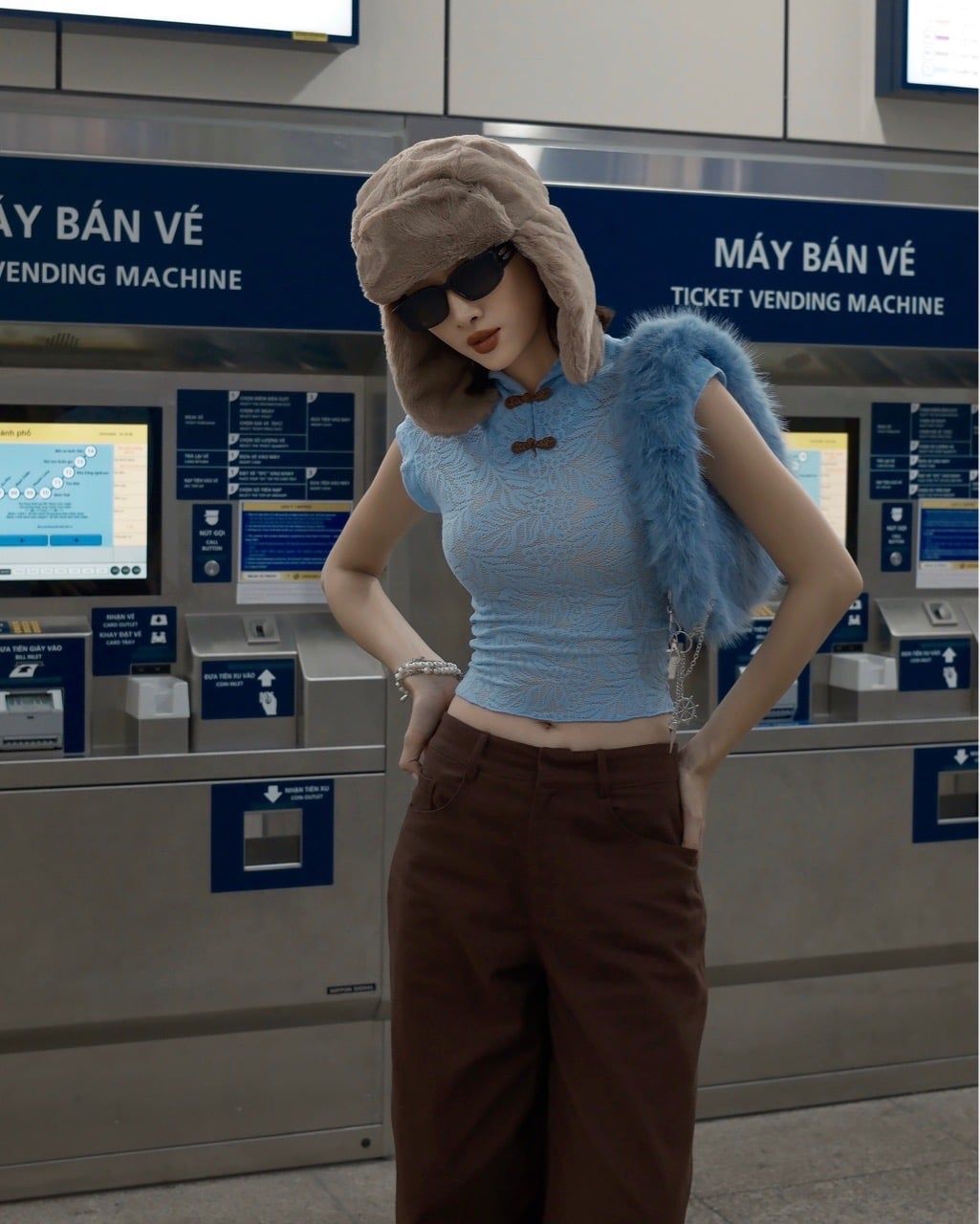p249 Brown Reverie Ushanka Hat - nón lông nâu
