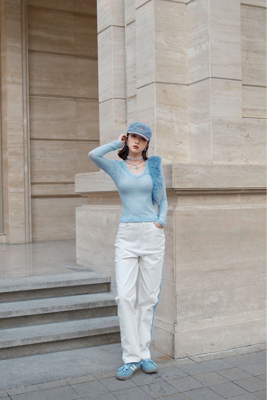 Q951 Ivory Lace-Trim Jeans SML |