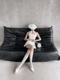 S106V4 VÁY TRẮNG XẾP LY ĐÍNH NƠ