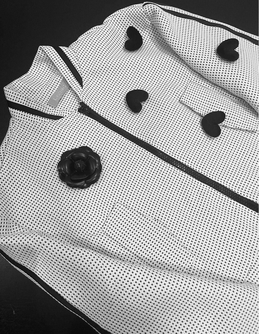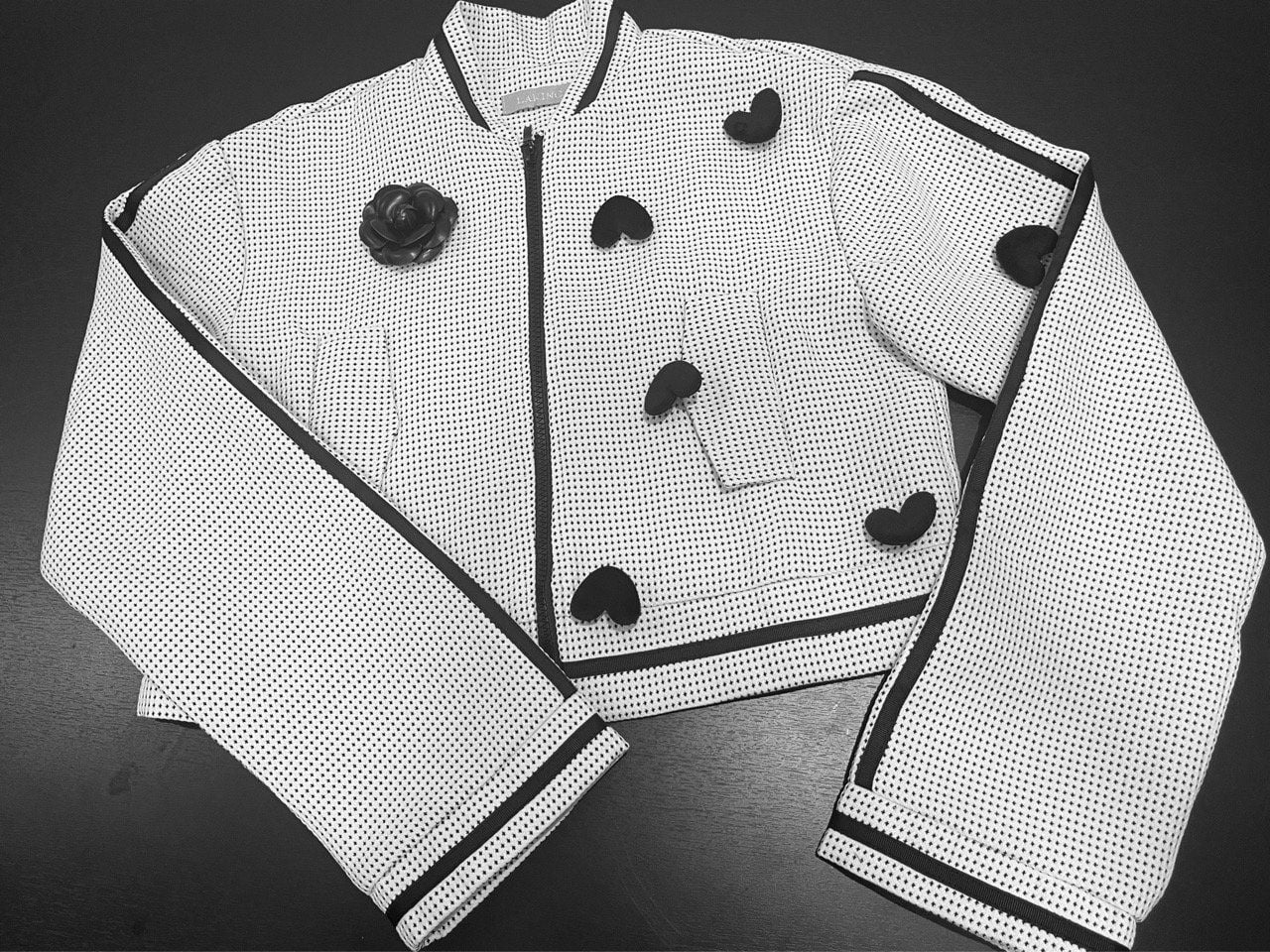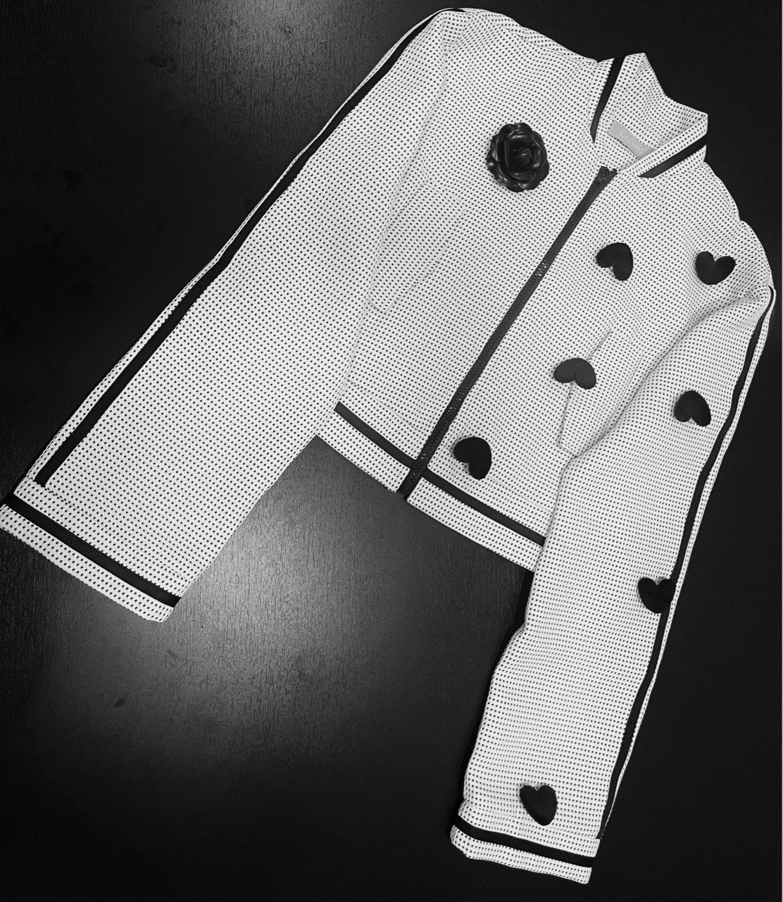 S733 ÁO KHOÁC BỐ TRẮNG BI TAY DÀI TIM ĐEN