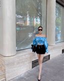 S6752 ÁO XANH TRỄ VAI METALLIC FREESIZE |