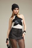 | Chất liệu | : | Thun giấy co giãn + da đen |
